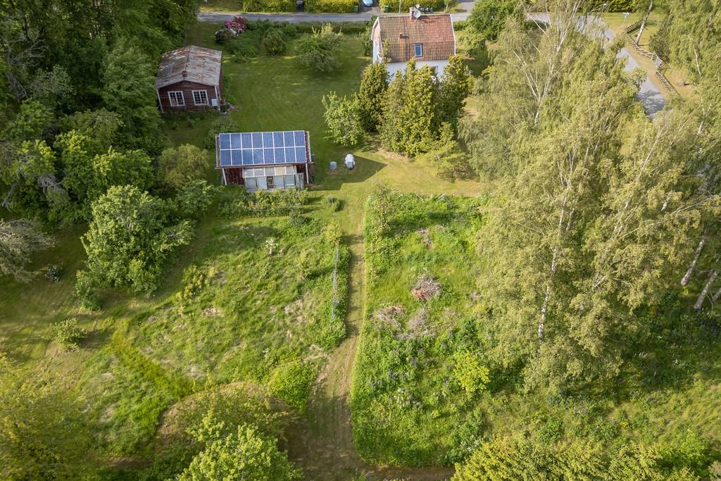 Het erf is 4 604 m², verdeeld over twee samen te beheren percelen. Je hebt een vruchtbare tuin met appel, peer, pruim, kers, perzik en zelfs walnoot, plus bessen en een syrenhaag. Er staat een ruim garagegebouw van ca. 9,2 × 6,2 m met 3‑fas stroom en betonvloer, een förrådslänga met gastenkamer, snickarbod en utedass, en een eenvoudige kas. Je loopt zo naar Vättern voor een ochtendduik, een avondje vissen of gewoon zitten en kijken. Allemansrätt begint hier min of meer aan je achterdeur.