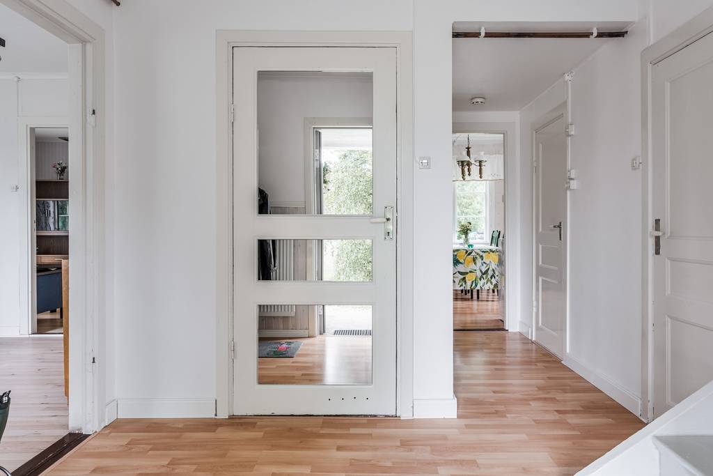 Boven kom je uit in een ruim allrum, flexibel in gebruik: werkplek, logeerruimte of hobbyhoek. Daarnaast ligt een royale slaapkamer. In de schuine dakdelen zijn kattvindar aangebracht, wat verrassend veel extra bergruimte oplevert zonder dat het woonoppervlak verloren gaat.