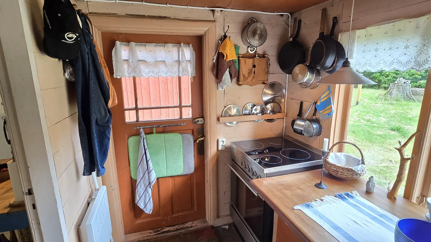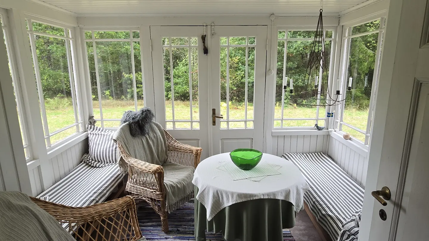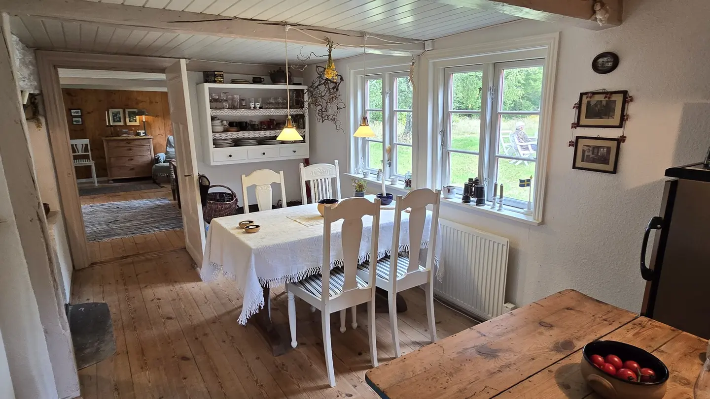 Deze vrijstaande fritidshus (vakantiewoning) in Knäred dateert uit 1820 en is opgebouwd uit traditionele houtskeletbouw. Het woonoppervlak bedraagt 100 m², aangevuld met 30 m² biarea (bijruimte). De woning telt 4 kamers.