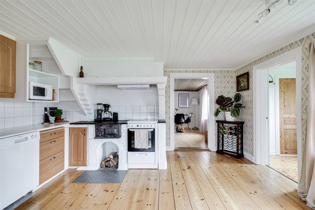 Het huis wordt verwarmd met directel, een lucht-lucht warmtepomp en de aanwezige kachels/vedspis; de vedkachel en kachels zijn, waar relevant, gecontroleerd en goedgekeurd voor gebruik. Dat betekent dat je hier prima op hout en warmtepomp kunt leunen, met de elektrische verwarming als aanvulling. Water komt uit een eigen engebrunnen en het afvalwater gaat via trekammare met markbädd, een typisch Zweedse oplossing, functioneel maar wel een systeem dat je als eigenaar in de gaten moet houden en op termijn mogelijk moet laten upgraden volgens nieuwe eisen. Het huis is goed onderhouden voor zijn leeftijd, maar het blijft een woning uit 1909, dus isolatie, ramen en details zijn niet op nieuwbouwniveau. Handig om rekening te houden met toekomstig onderhoud aan bijvoorbeeld verfwerk buiten en het nalopen van technische installaties.