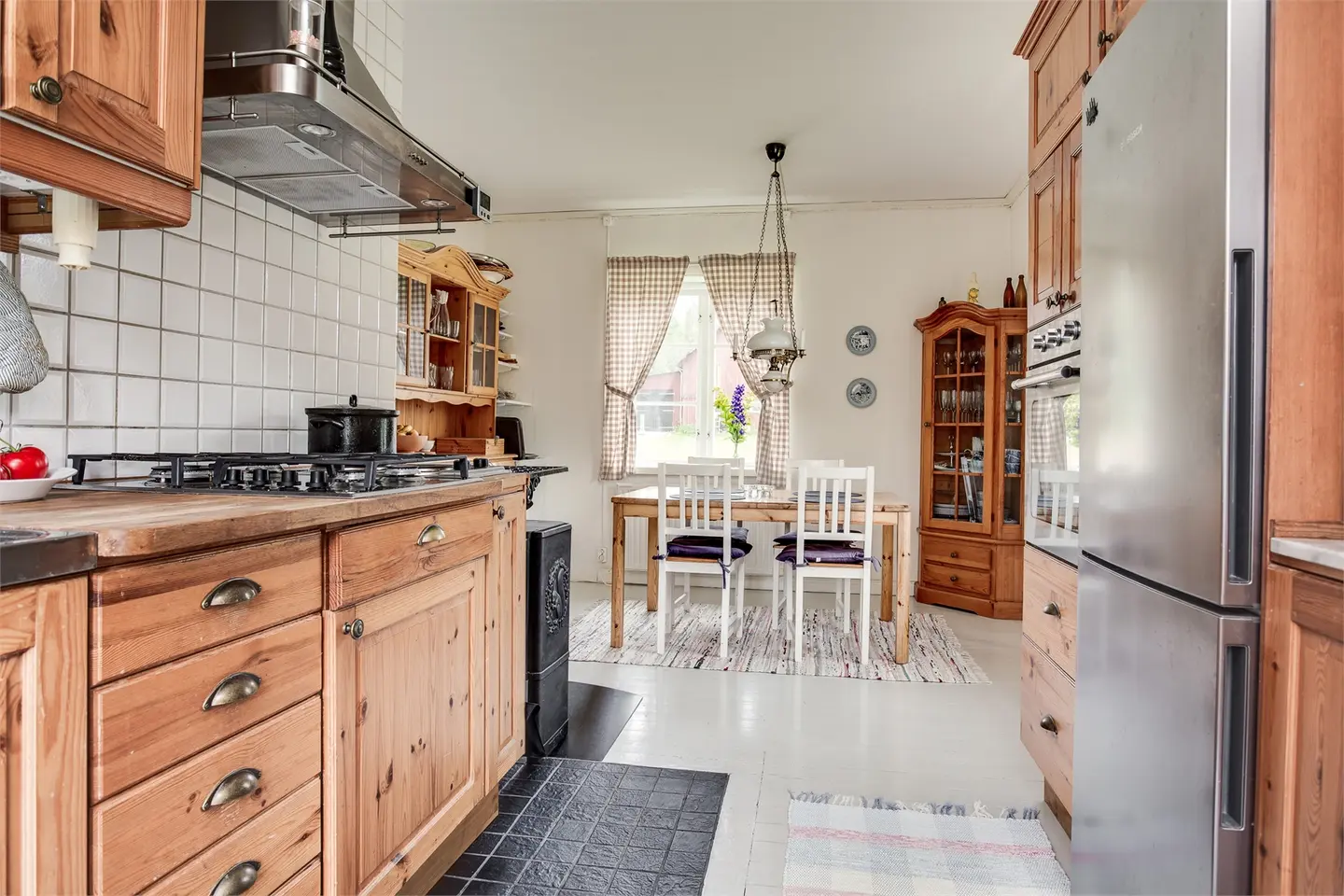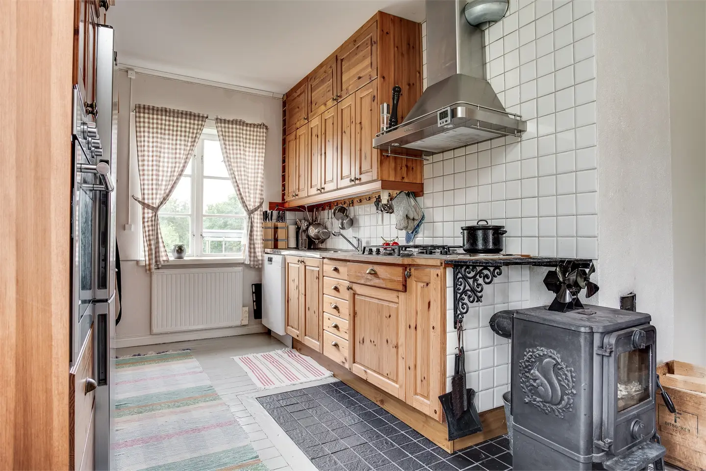 Verwarming verloopt via een lucht-warmtepomp (luftvärmepump) aangevuld met open haarden en directe elektrische verwarming. Let op: de open haarden zijn op dit moment niet goedgekeurd voor gebruik. De ventilatie werkt op zelfontwerp (självdrag), wat gebruikelijk is voor deze bouwperiode maar minder efficiënt dan mechanische ventilatie. De ramen zijn dubbel glas, wat voor een woning uit 1900 een redelijke basis is maar mogelijk vervanging verdient op termijn.