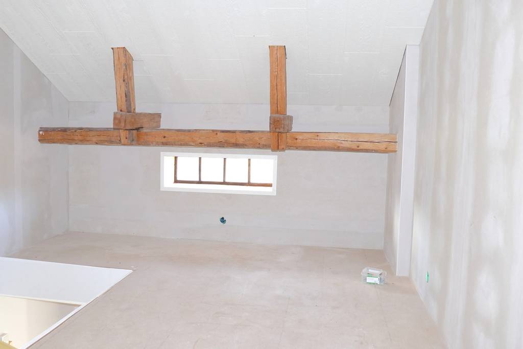 Boven kom je in een centrale hal waar je echt iets mee kunt. Daarnaast zijn er twee slaapkamers en nog een natte ruimte. De zichtbare houtconstructie in het dak geeft precies genoeg torp-gevoel. Je woont hier niet in een museum, maar je voelt de geschiedenis wel.