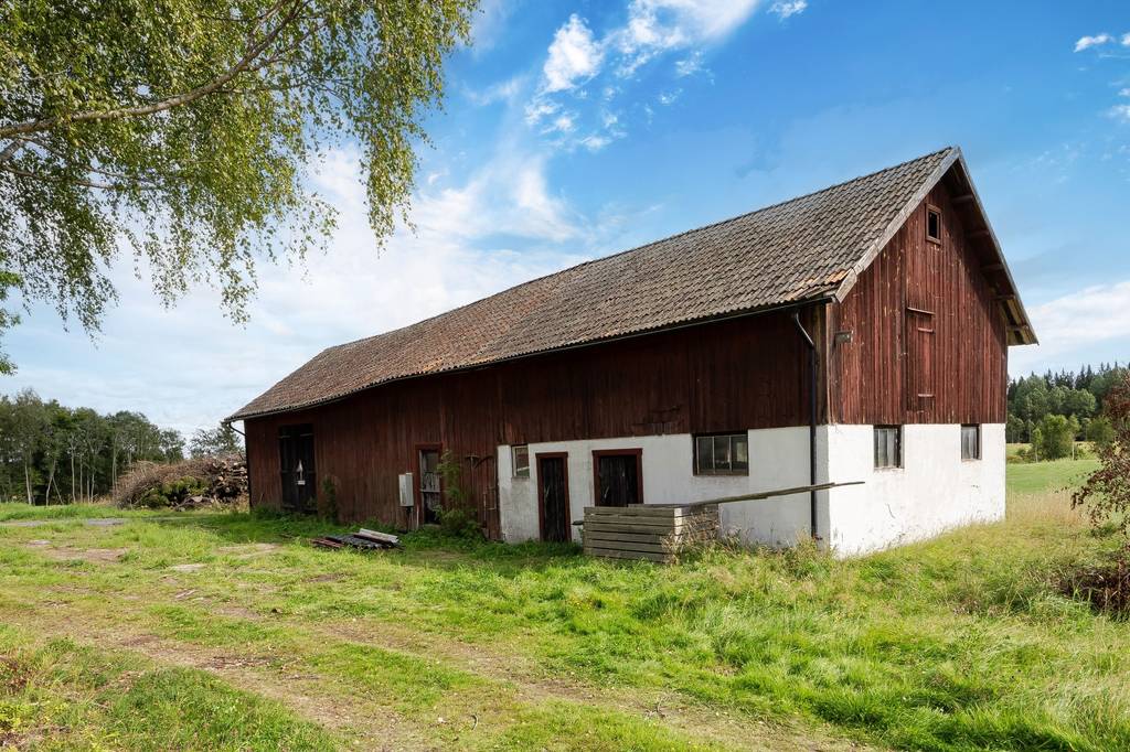 Ställberget 8. Een oude boerderij uit de 1700s, met eigen waterrand en ongeveer 4,5 hectare aaneengesloten grond. Geen buren in beeld. Wel lucht, ruimte en stilte.