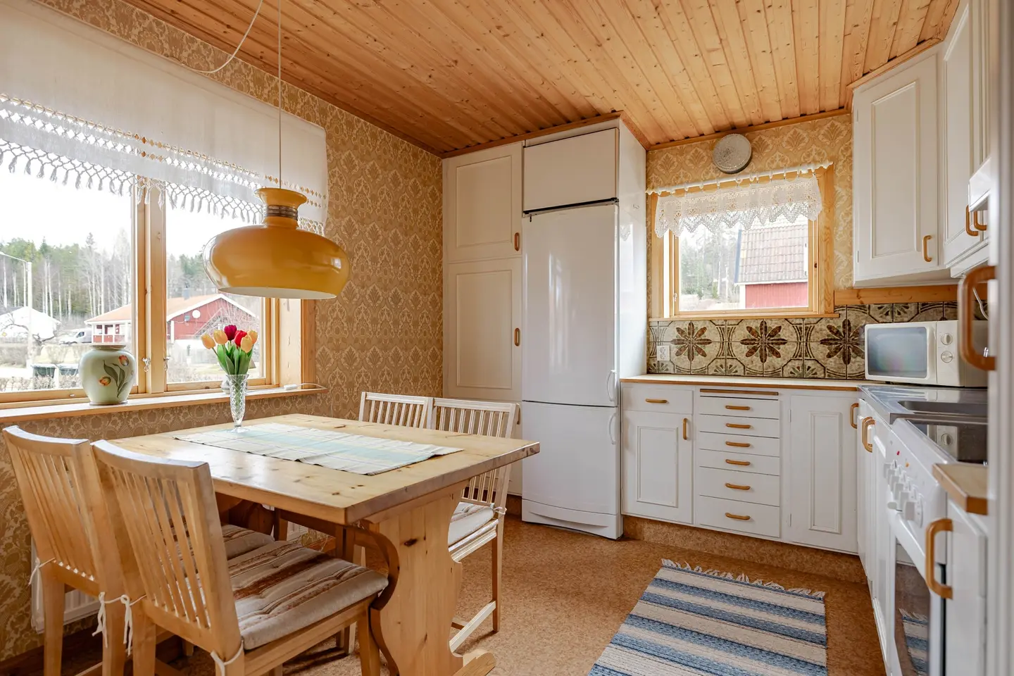 De woning is bijna 100 jaar oud. Dat brengt karakter met zich mee, maar ook een realistisch aandachtspunt: laat altijd een bouwkundige keuring (besiktning) uitvoeren. De vraagprijs is 1.250.000 SEK. De taxatiewaarde uit 2024 bedraagt 692.000 SEK, waarbij de opstalwaarde op 360.000 SEK staat. De vraagprijs ligt dus duidelijk boven de taxatiewaarde, wat gebruikelijk is op de huidige markt maar het vergelijken waard is.
