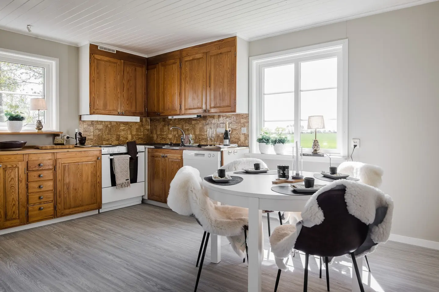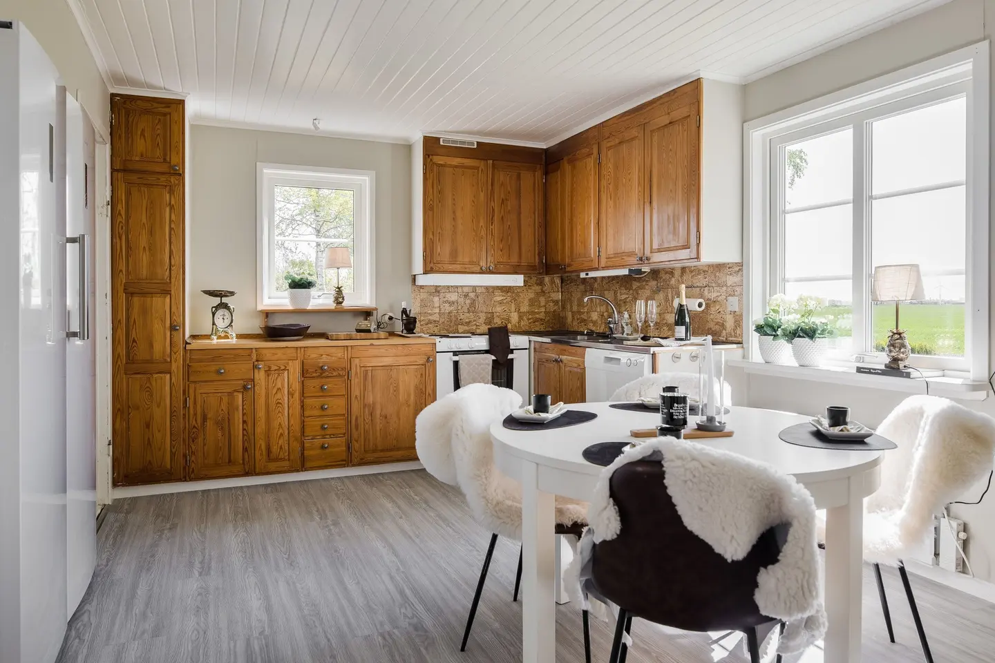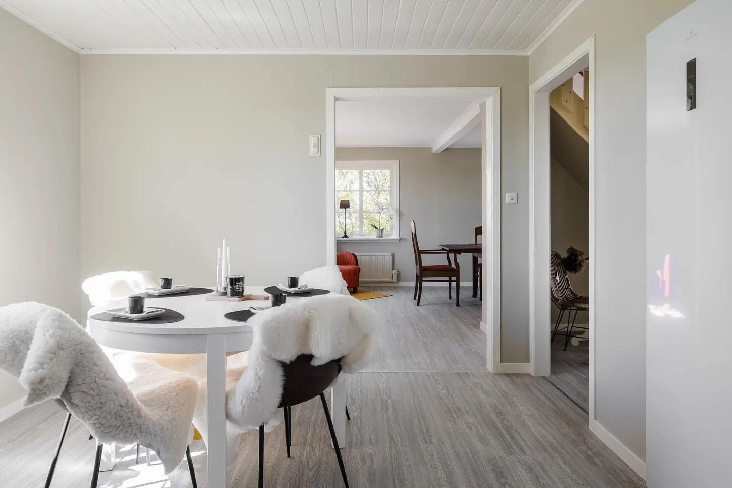 De woning heeft 1,5 bouwlaag, een houten gevel en een houten draagconstructie. Het gaat om 104 m² woonoppervlak, verdeeld over 4 kamers. Verwarming is volledig elektrisch. De meeste ramen zijn driedubbel glas (Elitfönster-16), één raam is nog tweedubbel.