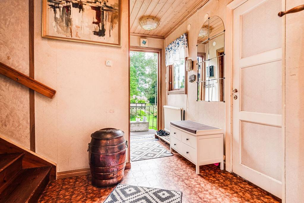 In de kelder vind je een matkällare, extra förråd en een techniekruimte met warmwaterboiler, waterpomp, hydrofoor en wasmogelijkheid. Ideaal voor voorraad, gereedschap en seizoensspullen.