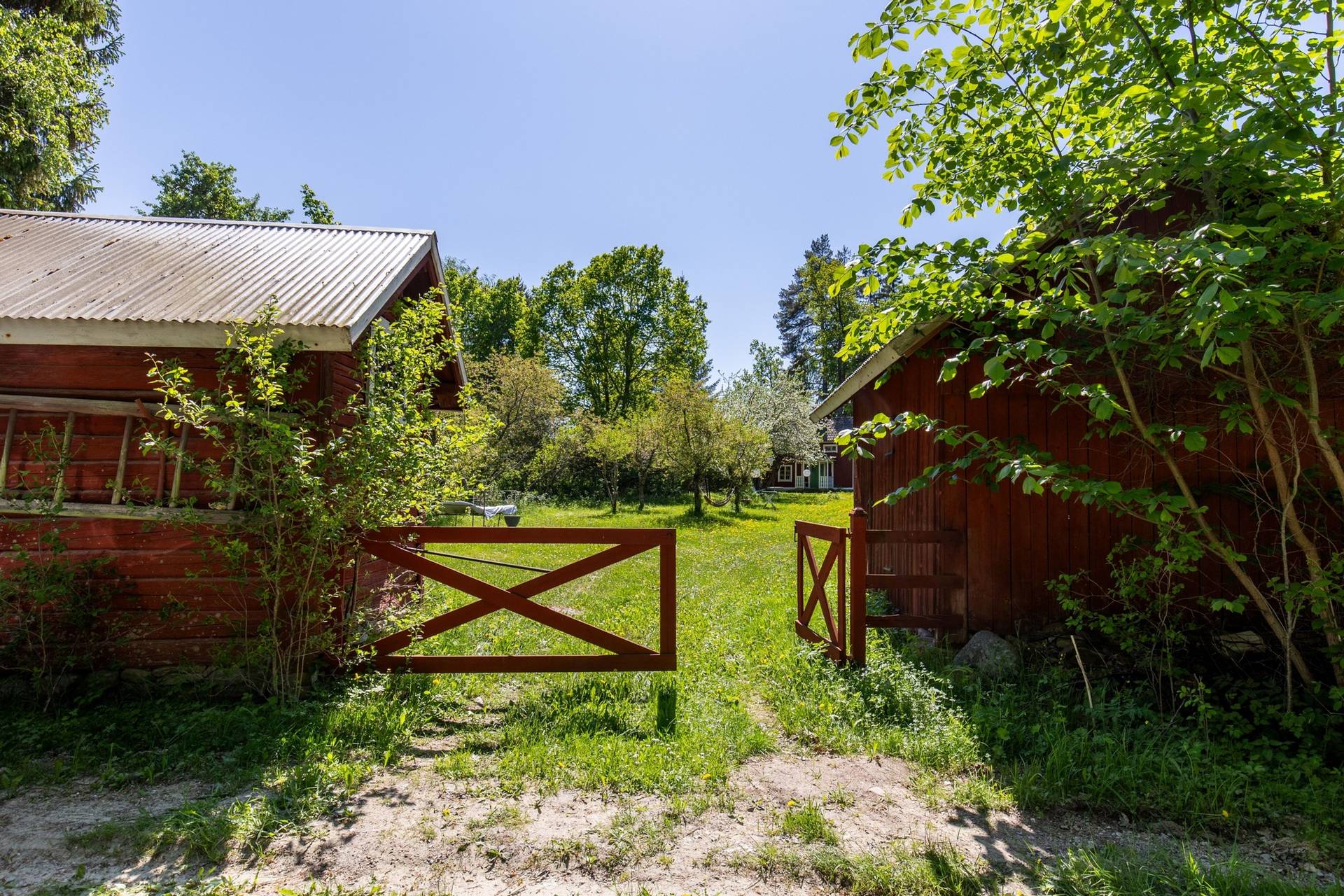 Een zomerhuis uit 1901 in Odensbacken, op een perceel van bijna 3.000 m² met fruitbomen, een groot terras en meerdere bijgebouwen. Geen groot woonoppervlak: 40 m² in het hoofdhuis. Maar wat er is, is met zorg gedaan. Hier koop je geen nieuwbouwgevoel, maar een plek die al meer dan een eeuw bestaat en die nog steeds goed aanvoelt.